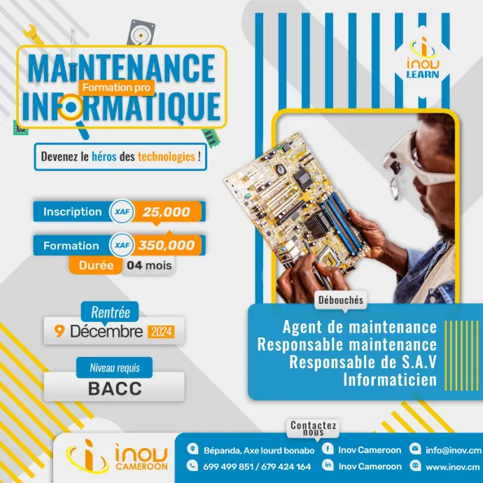 Le parcours "Maintenance Informatique" forme des experts en gestion, réparation et optimisation des systèmes informatiques.